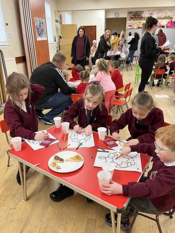 On a Thursday morning from 9.30 - 10.15 the nursery children from Hilltop Primary and the LCSC, along with the nursery children from St Dominic’s come along to the chorus with teachers, and parents for toast, juice and pancakes with chocolate spread. They also enjoy colouring in, playing with the toys or running around in the Large Hall - sometimes doing exercises with the Rev. It’s a great fun time helping to build up school - church - community spirit. A great time is had by all.